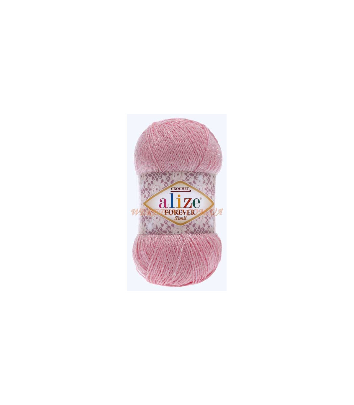 Класична пряжа Alize Forever Simli – дуже красива пряжа з люрексом, міцна, м'яка та шовковиста. Пряжа Алізе Форевер Сімлі чудово підходить для в'язання літніх та весняних речей як тонкими спицями №2 – 3.5, так і гачком №0,75 – 1,5. Завдяки вдало підібраному в тон пряжі люрексу створюється враження, що пряжа Alize Forever Simli світиться зсередини. Нитка в міру слизька (не чіпляється за інструмент, але й не вислизає), еластична і гладка, лягає в полотно рівномірно, практично без потовщень. При вазі мотка 50 г - товщина нитки 280 метрів.